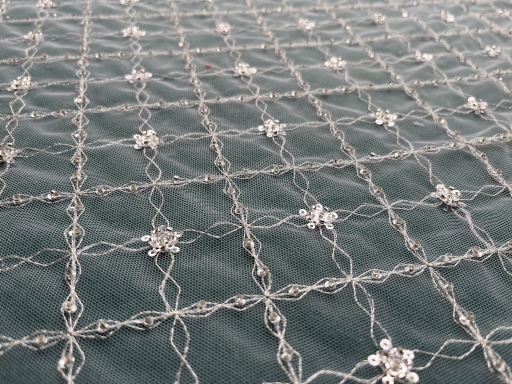 Composition: 100% POLY Yarn, 100% PET Sequin, 100% Nylon Mesh, Polyester, 3d flowers, Pearls, Beaded