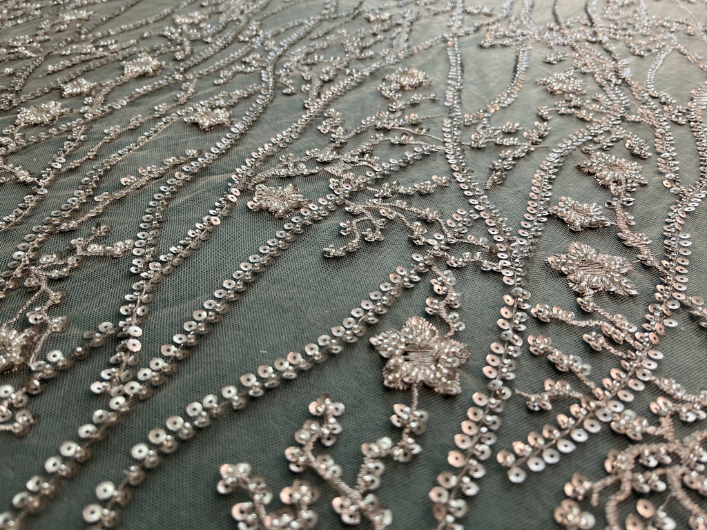 Composition: 100% POLY Yarn, 100% PET Sequin, 100% Nylon Mesh, Polyester, 3d flowers, Pearls, Beaded