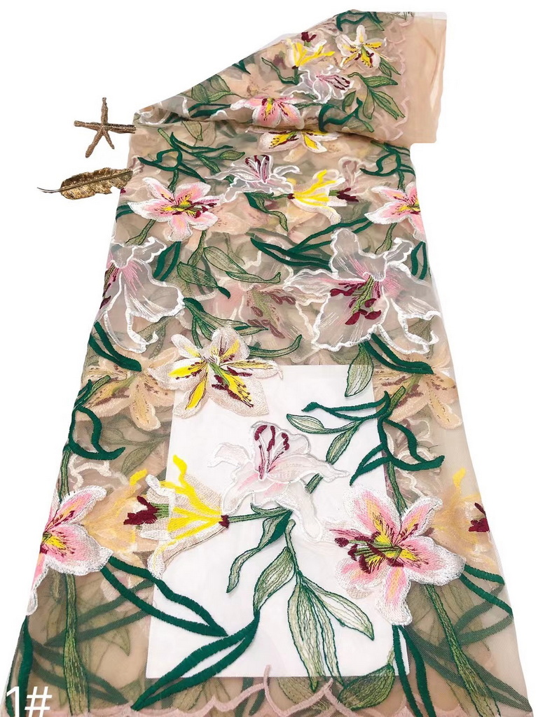 Style: Mesh Embroidery, Embroidery, Mesh fabric, Fabric Lace, French tulle lace fabric, Korea lace fabric, Colorful Embroidery lace, Net lace, Bridal fabric