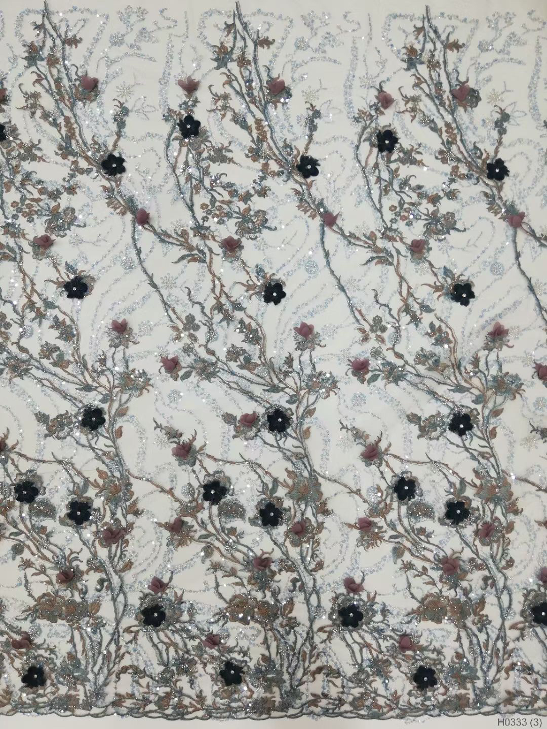 Composition: 100% POLY Yarn, 100% PET Sequin, 100% Nylon Mesh, Polyester, 3d flowers, Pearls, Beaded