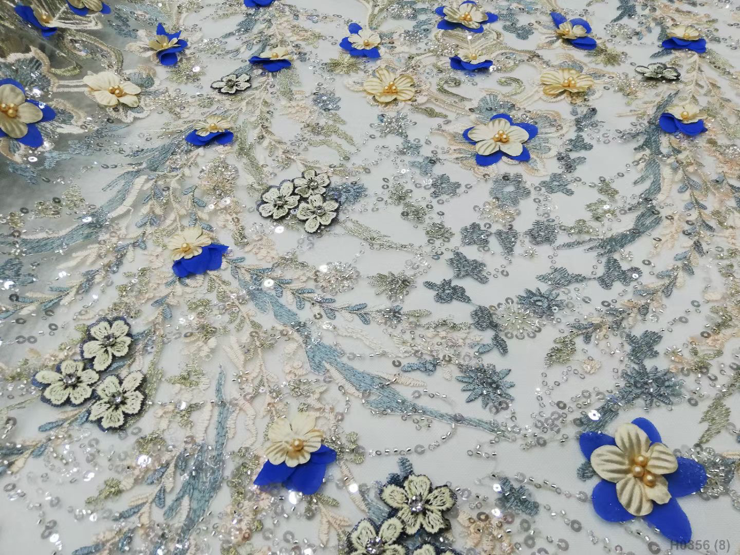 Composition: 100% POLY Yarn, 100% PET Sequin, 100% Nylon Mesh, Polyester, 3d flowers, Pearls, Beaded