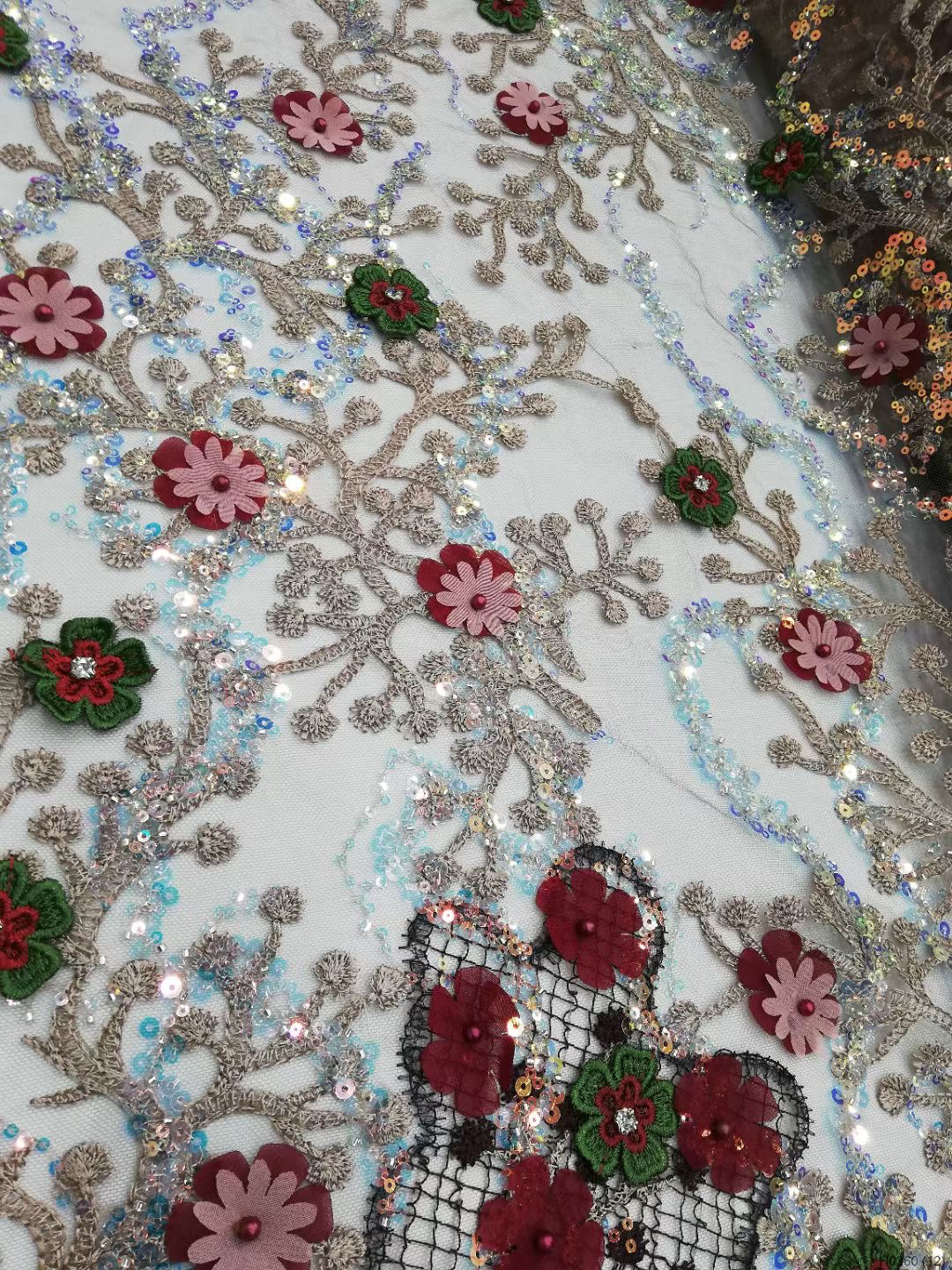 Composition: 100% POLY Yarn, 100% PET Sequin, 100% Nylon Mesh, Polyester, 3d flowers, Pearls, Beaded