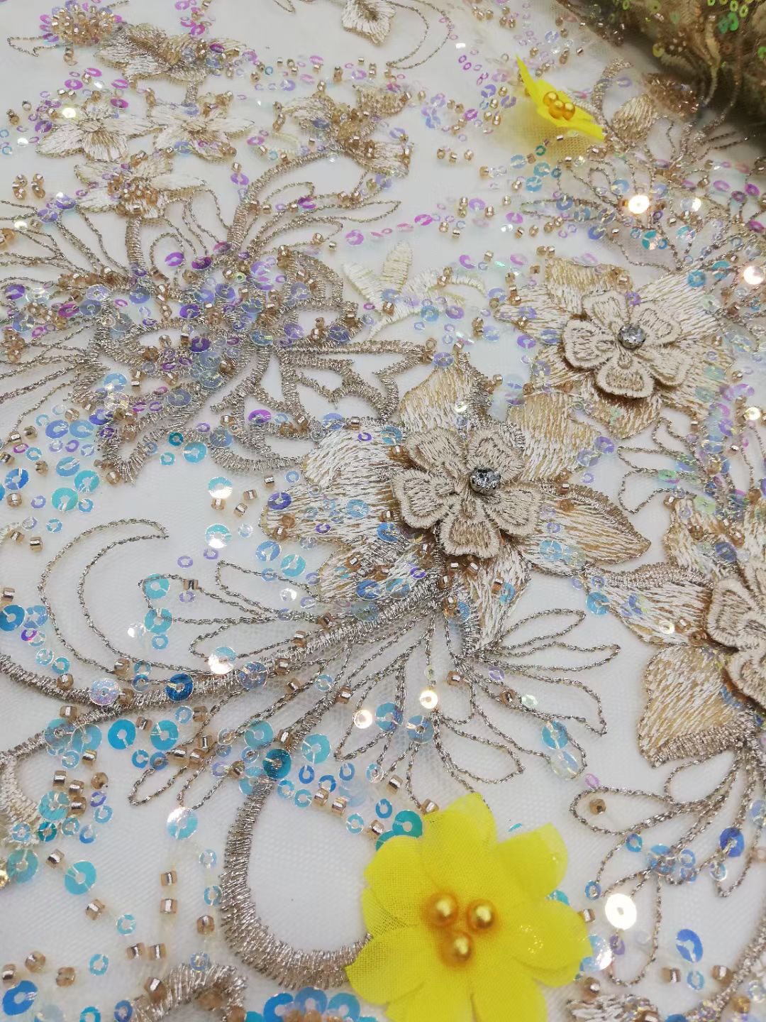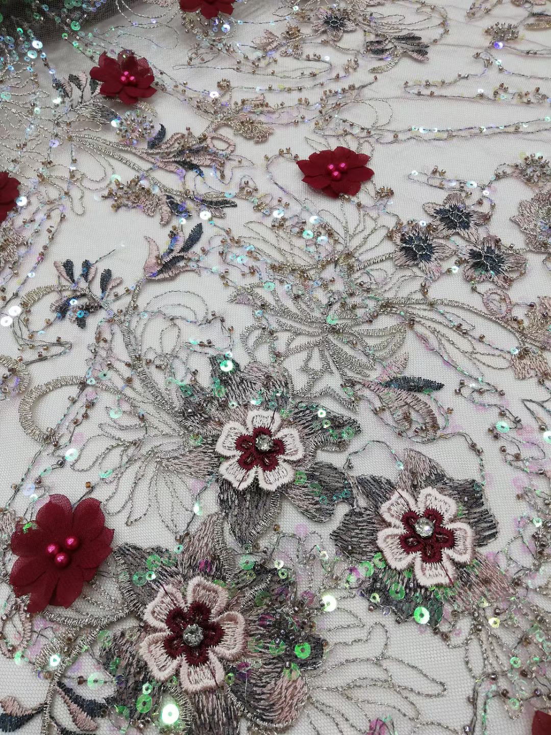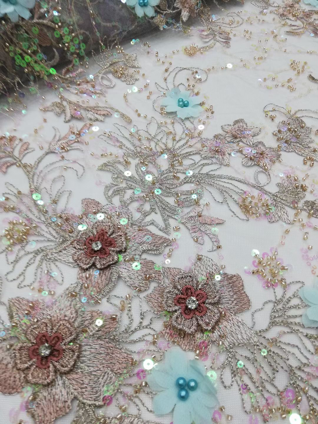 Composition: 100% POLY Yarn, 100% PET Sequin, 100% Nylon Mesh, Polyester, 3d flowers, Pearls, Beaded