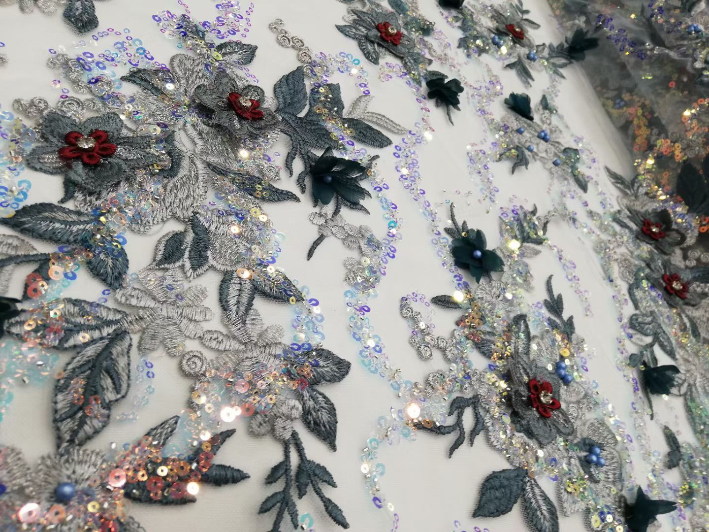 Composition: 100% POLY Yarn, 100% PET Sequin, 100% Nylon Mesh, Polyester, 3d flowers, Pearls, Beaded