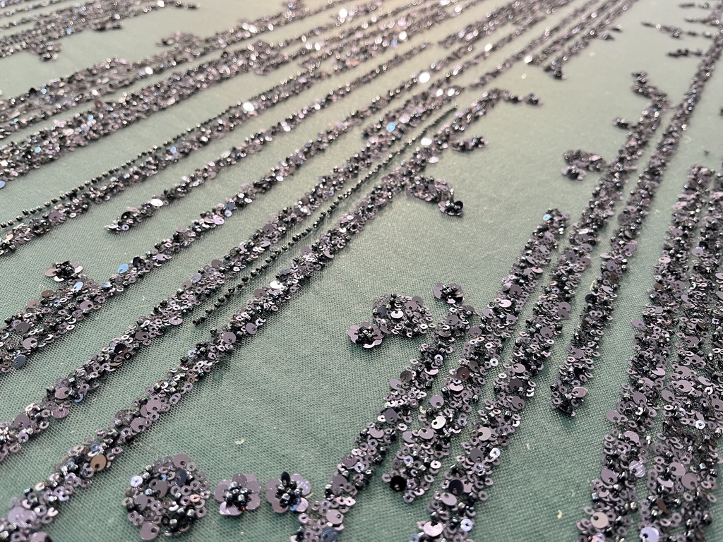 Composition: 100% POLY Yarn, 100% PET Sequin, 100% Nylon Mesh, Polyester, 3d flowers, Pearls, Beaded