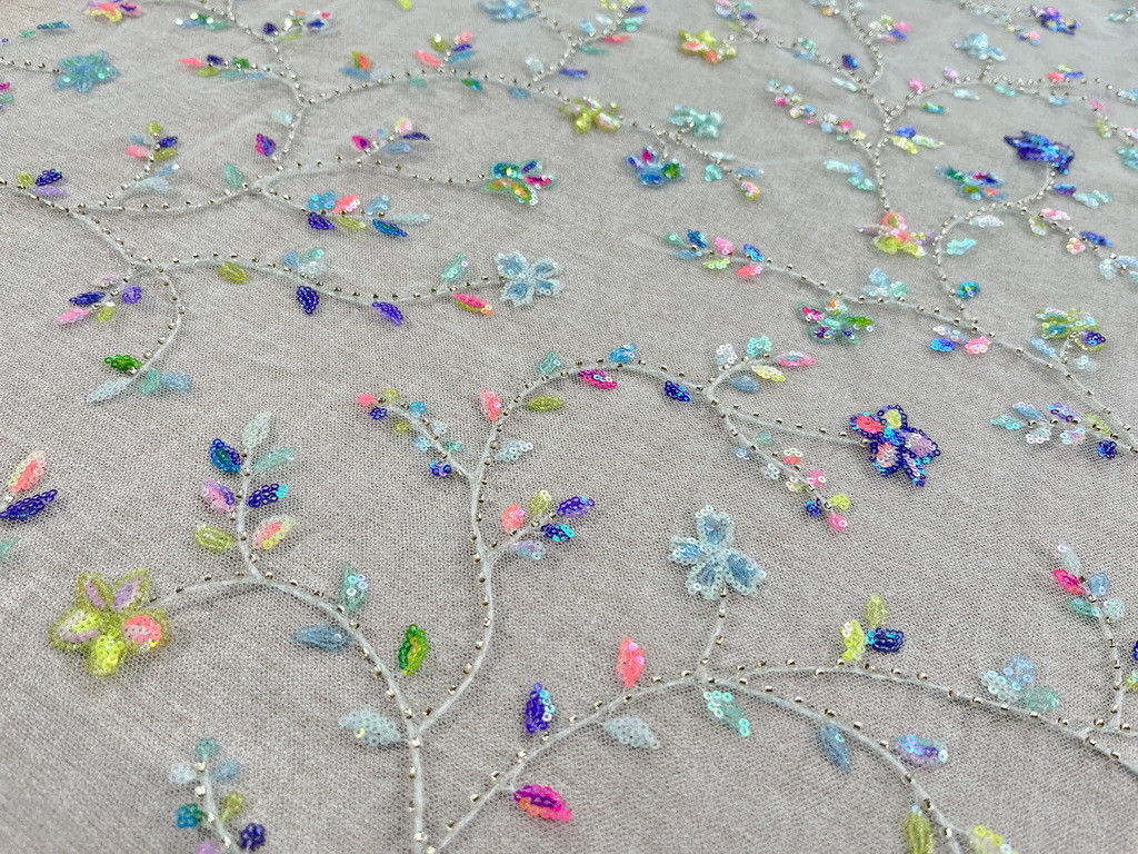Composition: 100% POLY Yarn, 100% PET Sequin, 100% Nylon Mesh, Polyester, 3d flowers, Pearls, Beaded