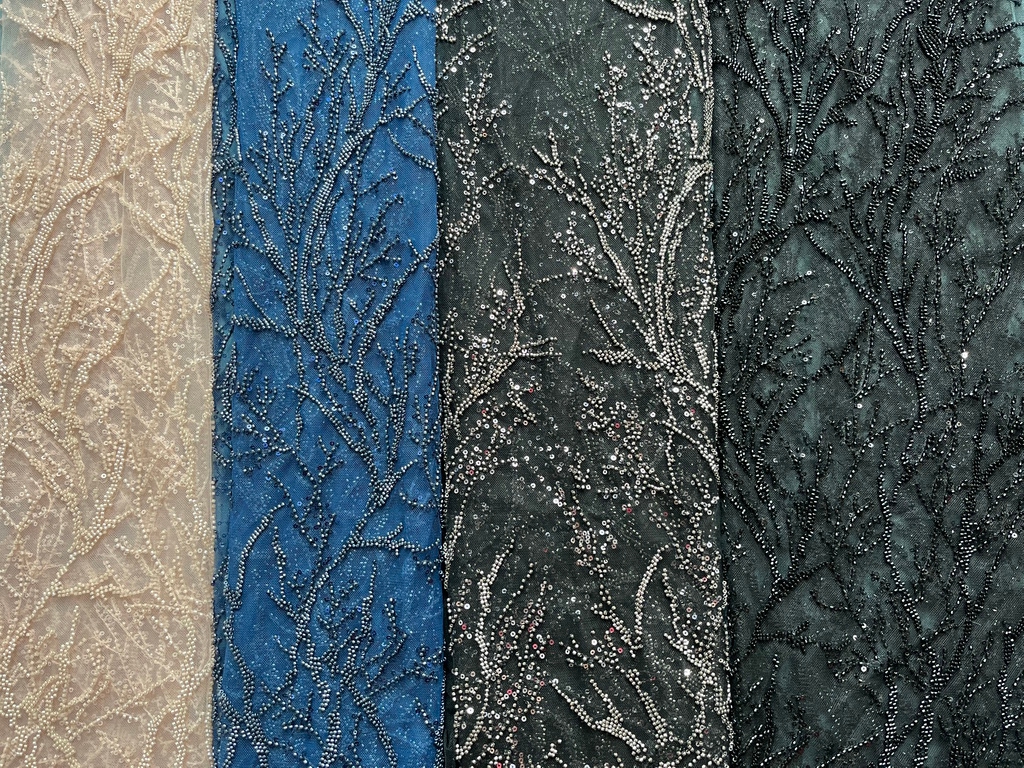 Composition: 100% POLY Yarn, 100% PET Sequin, 100% Nylon Mesh, Polyester, 3d flowers, Pearls, Beaded
