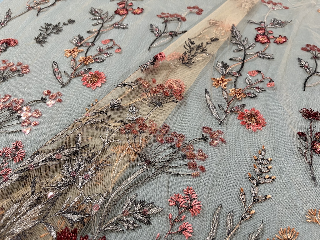 Composition: 100% POLY Yarn, 100% PET Sequin, 100% Nylon Mesh, Polyester, 3d flowers, Pearls, Beaded