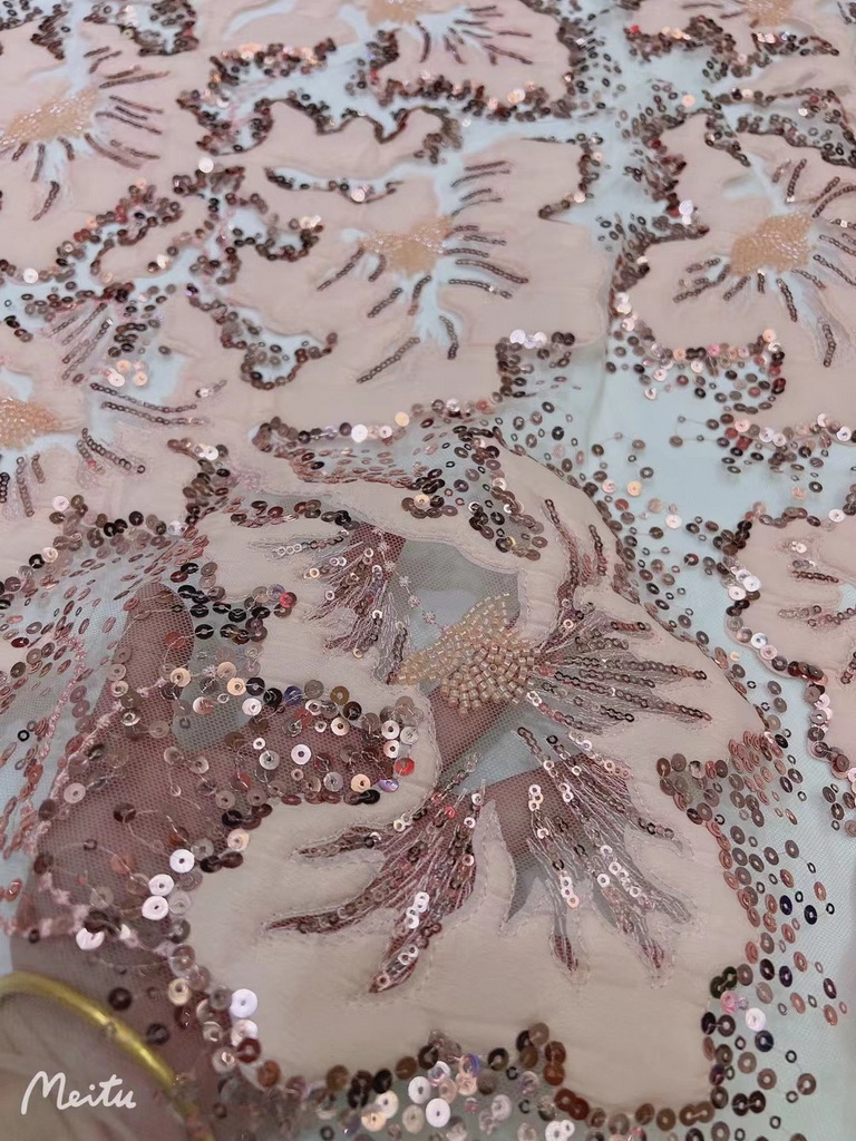 Composition: 100% POLY Yarn, 100% PET Sequin, 100% Nylon Mesh, Polyester, 3d flowers, Pearls, Beaded
