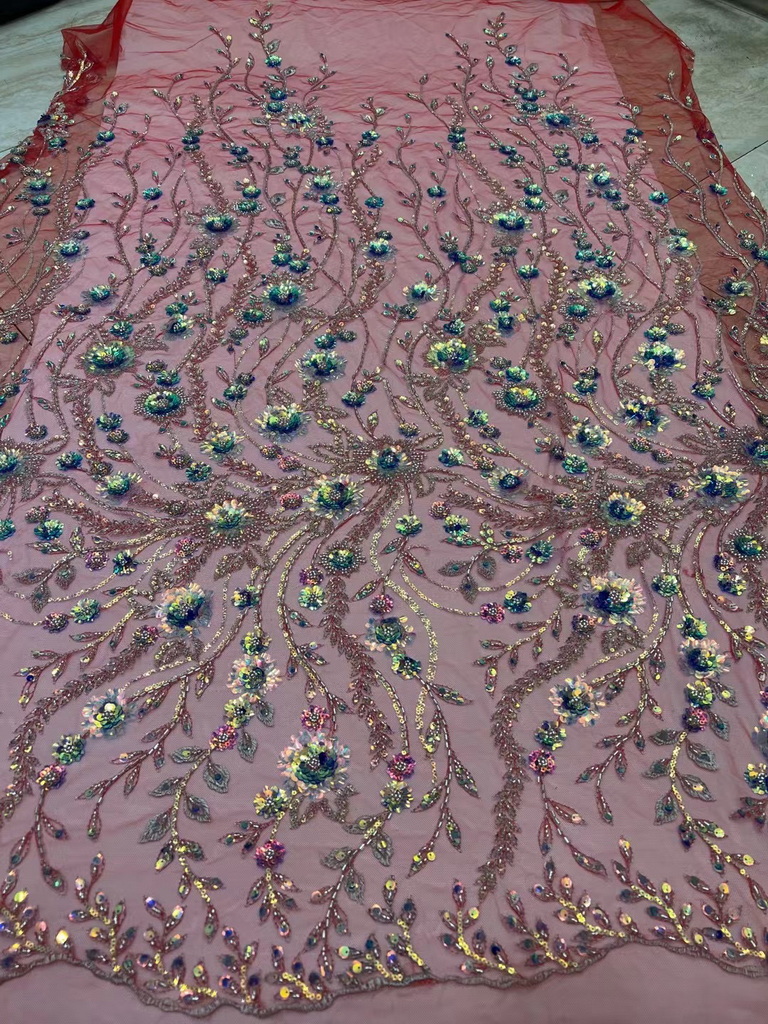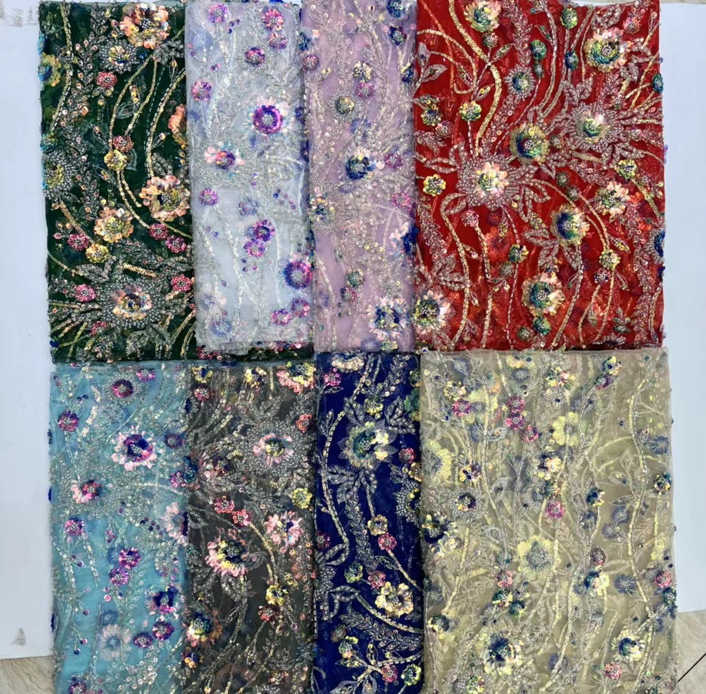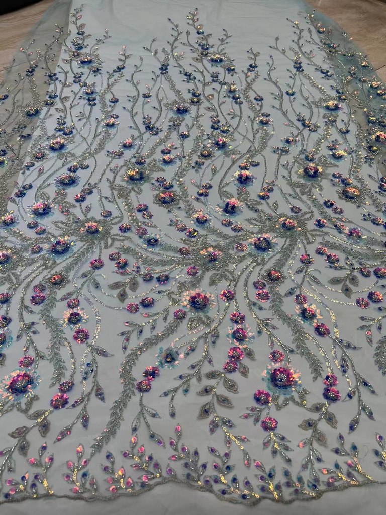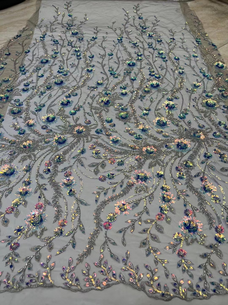 Composition: 100% POLY Yarn, 100% PET Sequin, 100% Nylon Mesh, Polyester, 3d flowers, Pearls, Beaded