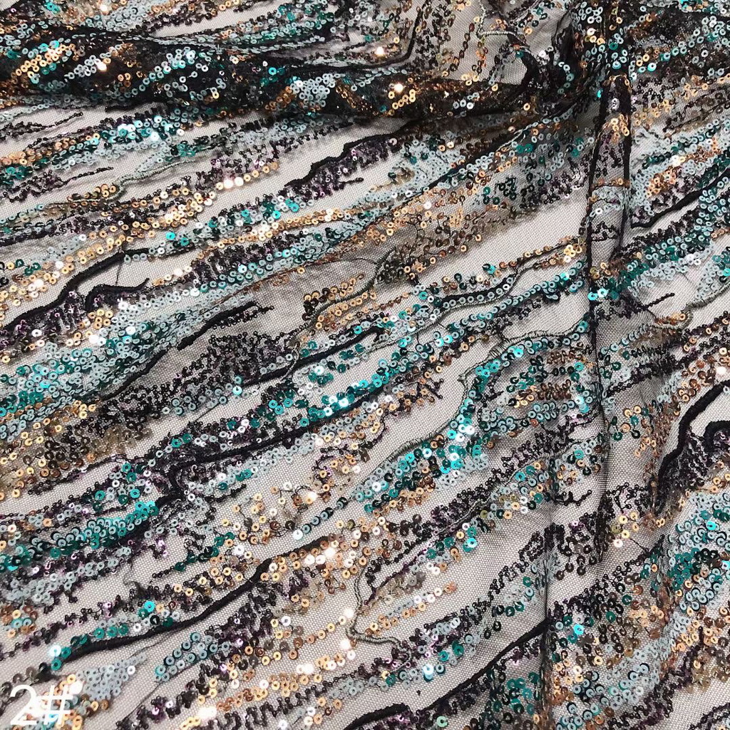 Composition: 100% POLY Yarn, 100% PET Sequin, 100% Nylon Mesh
